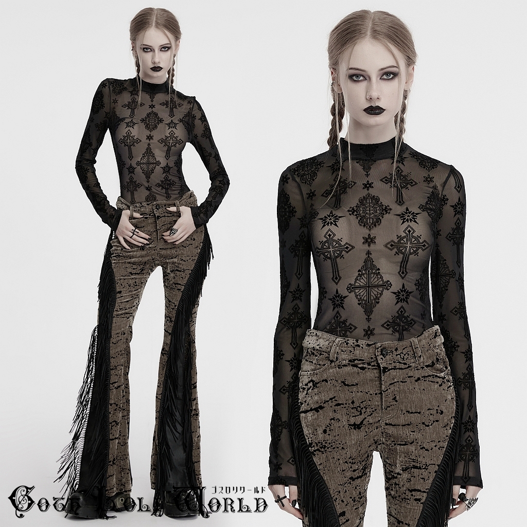 - 即納 OT-990DQF-BK-M-L ゴシックファッション シースルー カットソー ゴシック ビジュアル系 ヴィジュアル系 V系 ライブ衣装