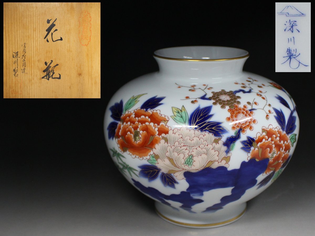 - ■深川製磁■梅花文・花瓶・花器・飾壺・高さ 栞・共箱・美術有田焼・宮内庁御用達・f7130h