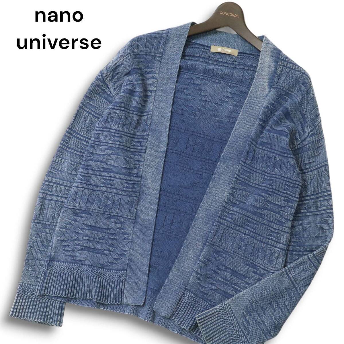 - nano&co ナノユニバース ウォッシュ加工★ インディゴ ネイティブ柄 ニット 羽織り カーディガン Sz.M メンズ