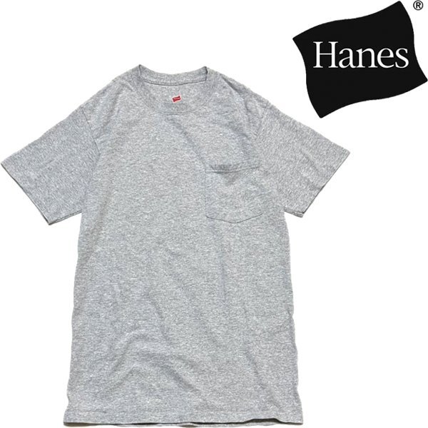 > 1点物◆ヘインズHANESポケット灰色無地Tシャツ古着メンズSMレディースOKアメカジ90sストリートスポーツブランド中古ポケTポロシャツ349271