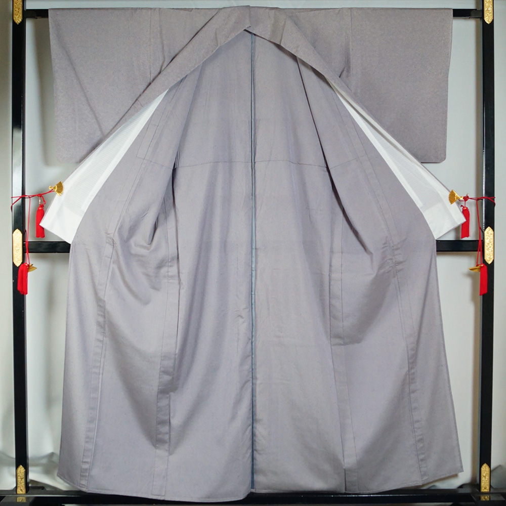 > 夏着物 紗紬 紗 撒き糊模様 シックな藤色系 紬 Mサイズ 中古 夏 着物 つむぎ お召 紬 夏物 夏 リサイクル着物 夏着物 正絹 単衣 リサイクル