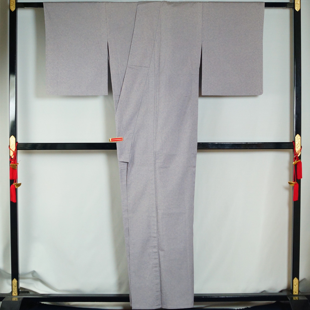 - 夏着物 紗紬 紗 撒き糊模様 シックな藤色系 紬 Mサイズ 中古 夏 着物 つむぎ お召 紬 夏物 夏 リサイクル着物 夏着物 正絹 単衣 リサイクル