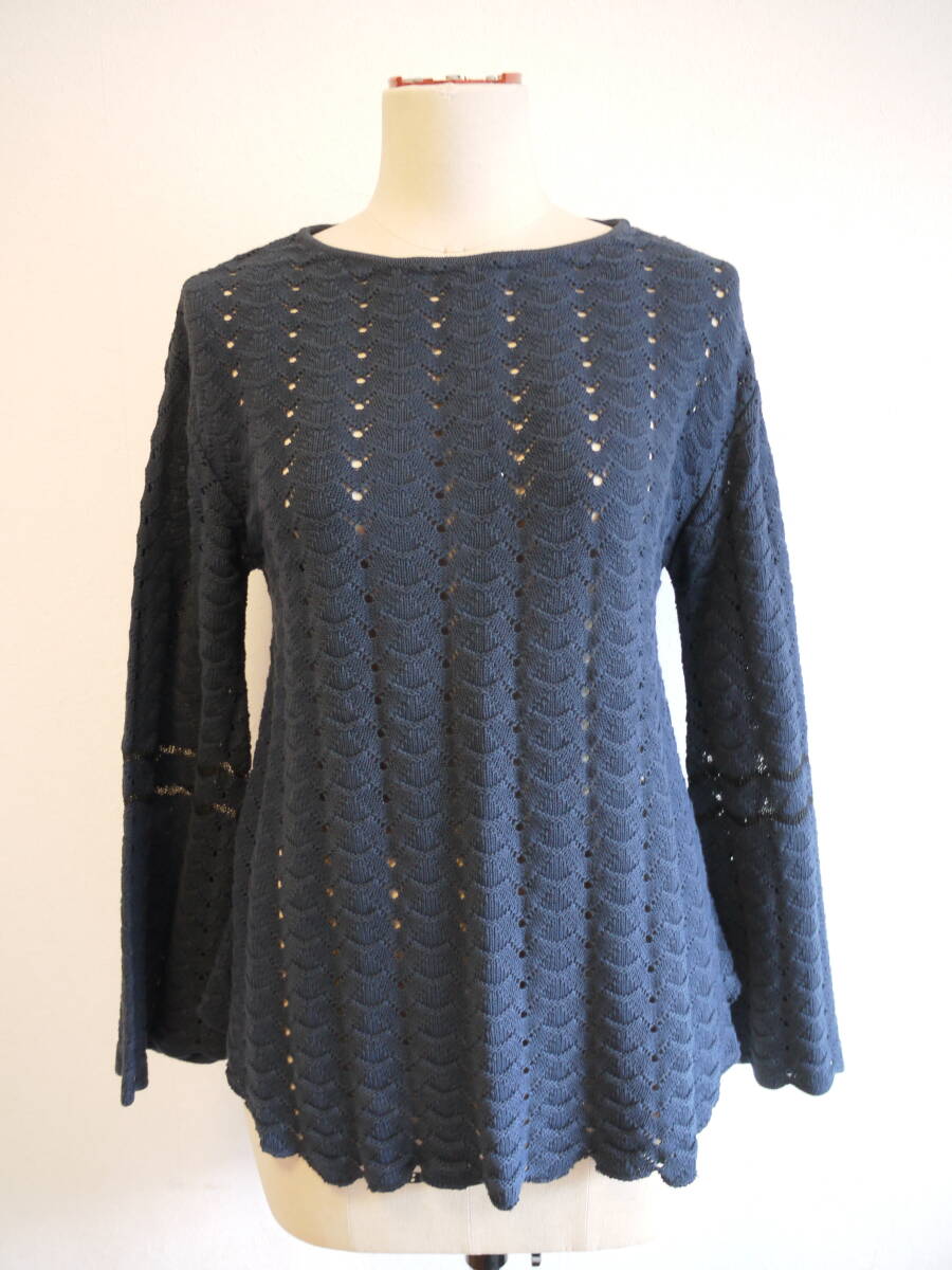 - MARILYN MOON マリリンムーン 透かし編み 長袖コットンニット ネイビー 未使用