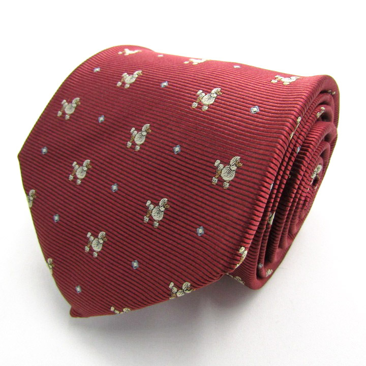 > アクアスキュータム ブランド ネクタイ ドット 小紋柄 動物柄 プードル 犬 シルク 日本製 PO メンズ レッド Aquascutum