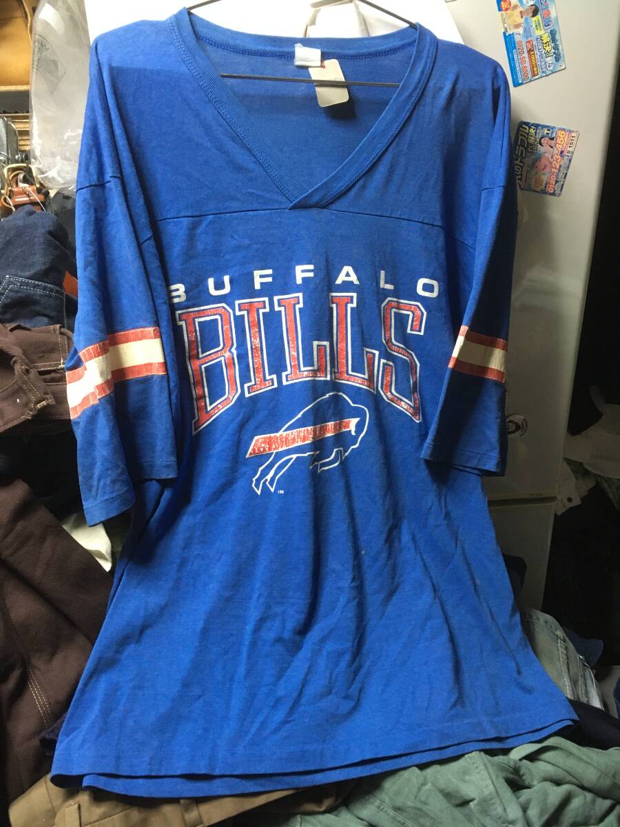> 2507ビンテージ80's NFLバッファロービルズBUFFALO BILLSラインHALFハーフ5分丈フットボールTシャツOLDオールドUSED古着7分3/4ユニフォーム