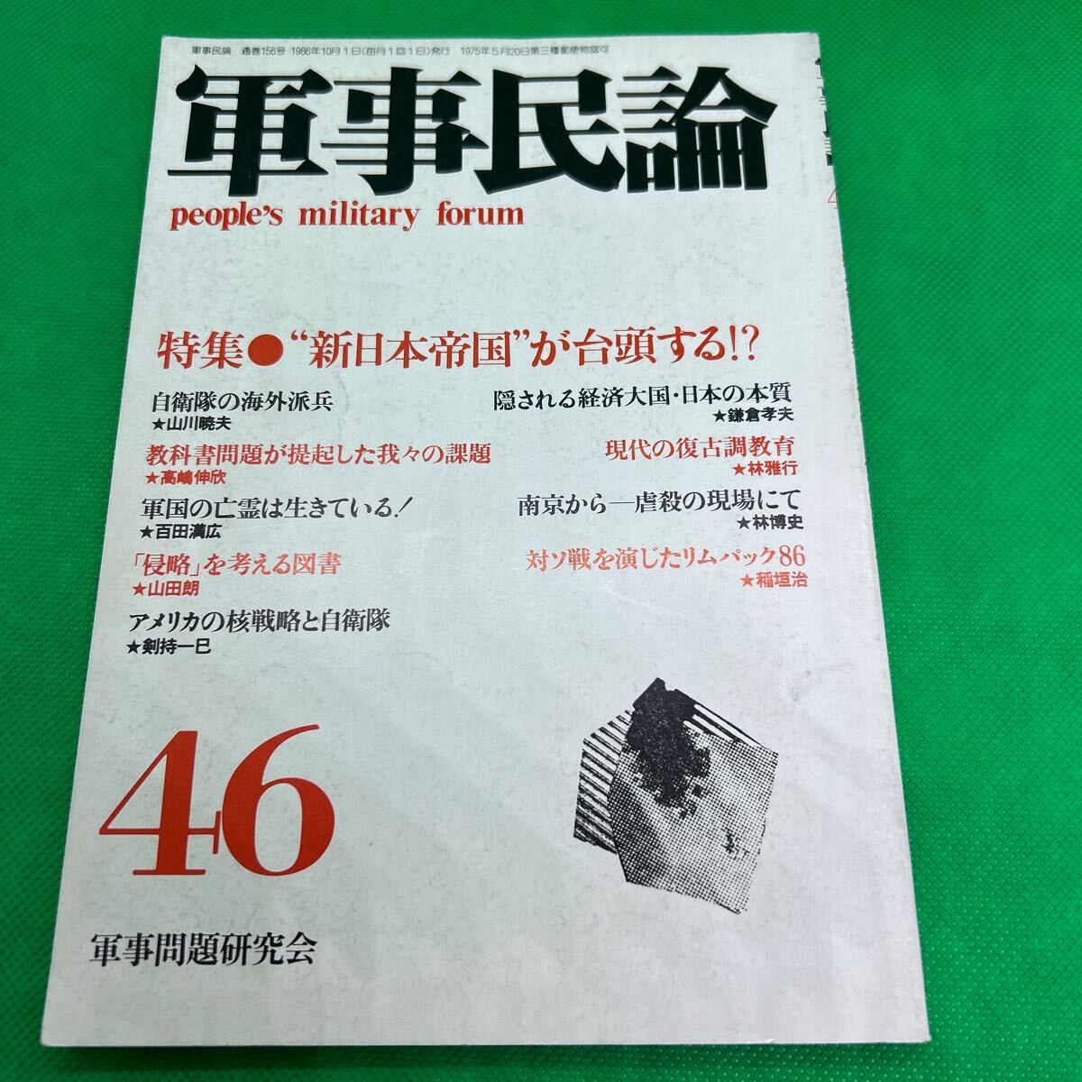 > 軍事民論46/新日本帝国が台頭する?/1986年10月発行/軍事問題研究会/自衛隊の海外派兵/教科書問題/復古調教育/I250703-4*54