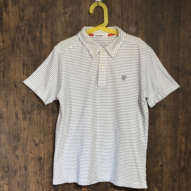 - A352◇familiar | ファミリア ボーダー半袖ポロシャツ オフホワイト×ネイビー キッズ 150サイズ 中古品