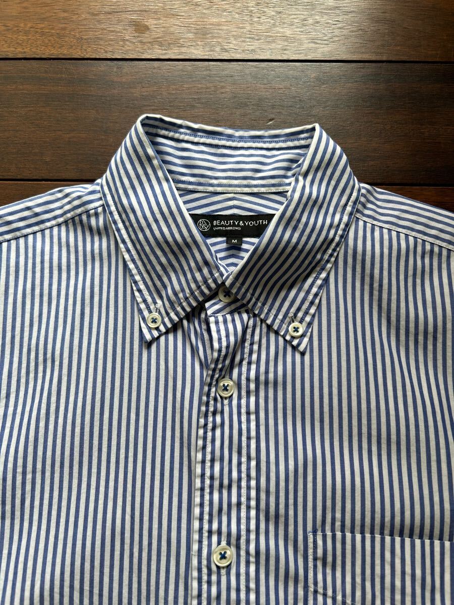 > BEAUTY&YOUTH UNITED ARROWS ユナイテッドアローズ★半袖シャツ★ストライプ白×青★コットン100%綿100%