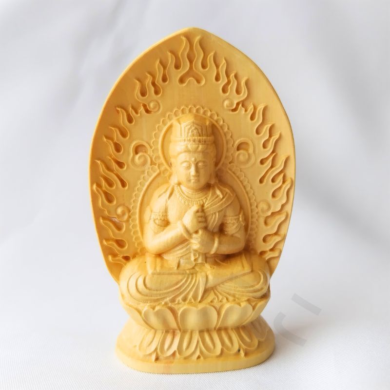 - 仏像 木彫り 彫刻 大日如来坐像 柘植 お守り袋 置物 真言宗 懐中 火炎光背 コンパクト 小さい 手の平 守本尊 未年 申年 曼荼羅 金剛界 仏教