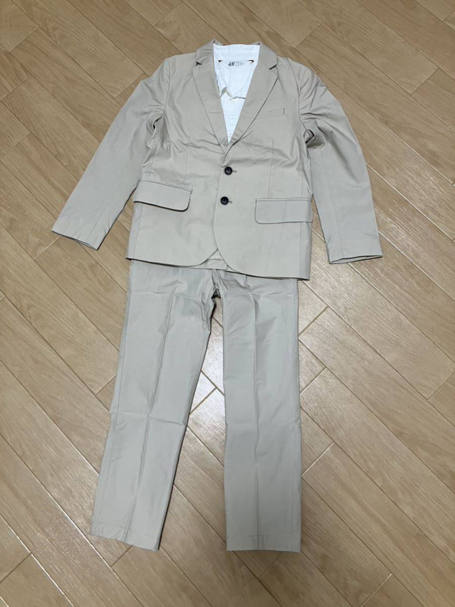 - USED★H&M【キッズ スーツ上下/長袖ワイシャツ 3点セット】スーツベージュ・長袖ワイシャツ白/EUR128cm