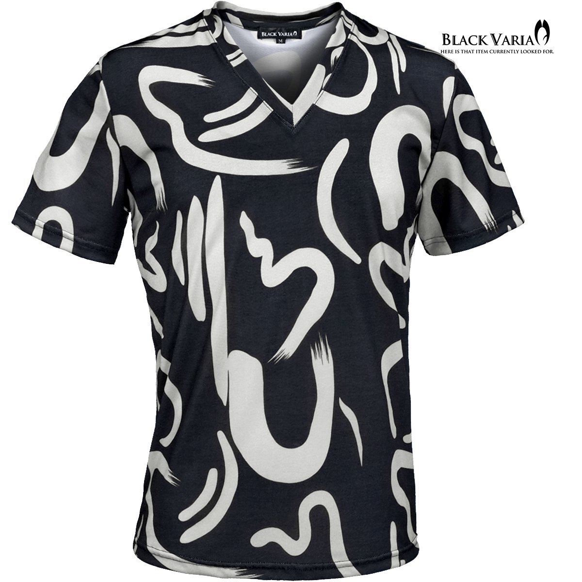> 252309-whbk BLACK VARIA Tシャツ 半袖 Vネック グラフィティ アート スリム 細身 ストレッチ メンズ(ホワイト白ブラック黒) L 派手