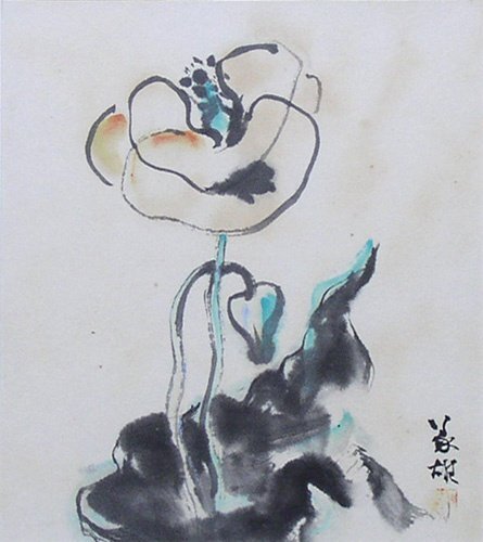 - 【真作】鶴岡義雄「けし」洋画 色紙 大きな花が繊細で美しい静物画です。鶴岡先生には珍しい作品です【正光画廊】HI