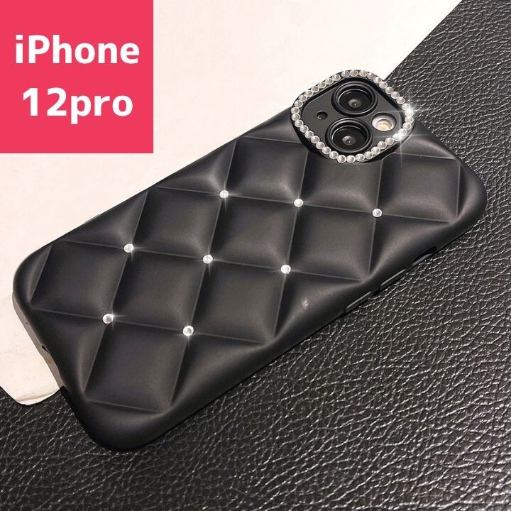 - 大人気 iPhone12pro ケース ダイヤモンド型 キルティング ブラック