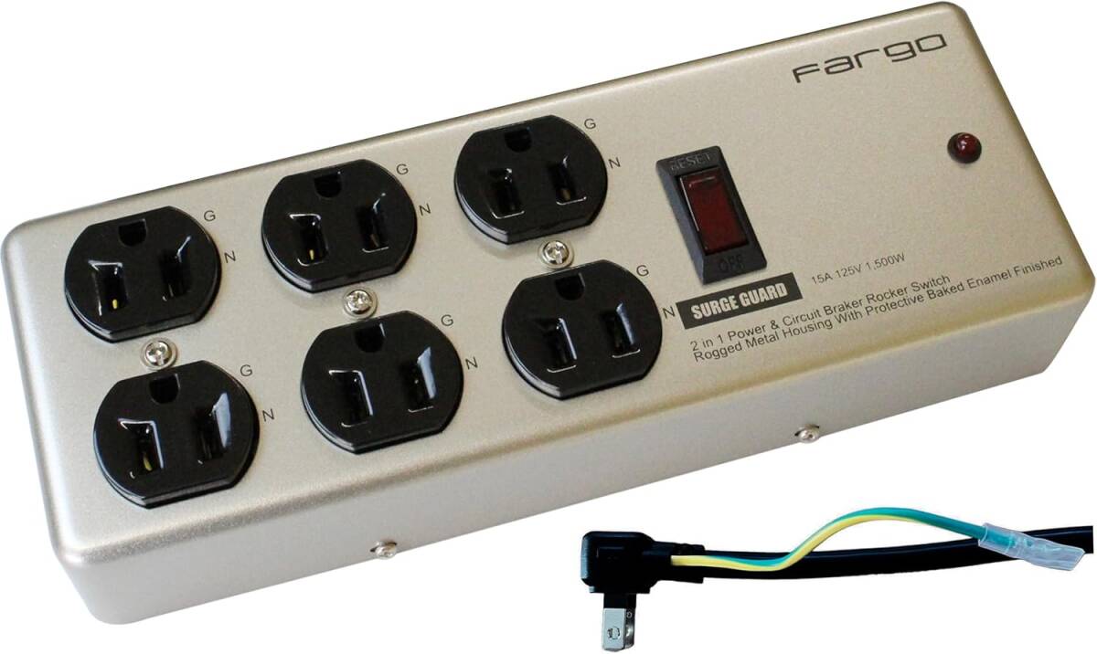 - 【新品】 Fargo STEEL TAP 電源タップ スチール製 3ピン対応 アース線付き コード 壁掛け 固定 (シルバー6個口, 6個口1.8m)