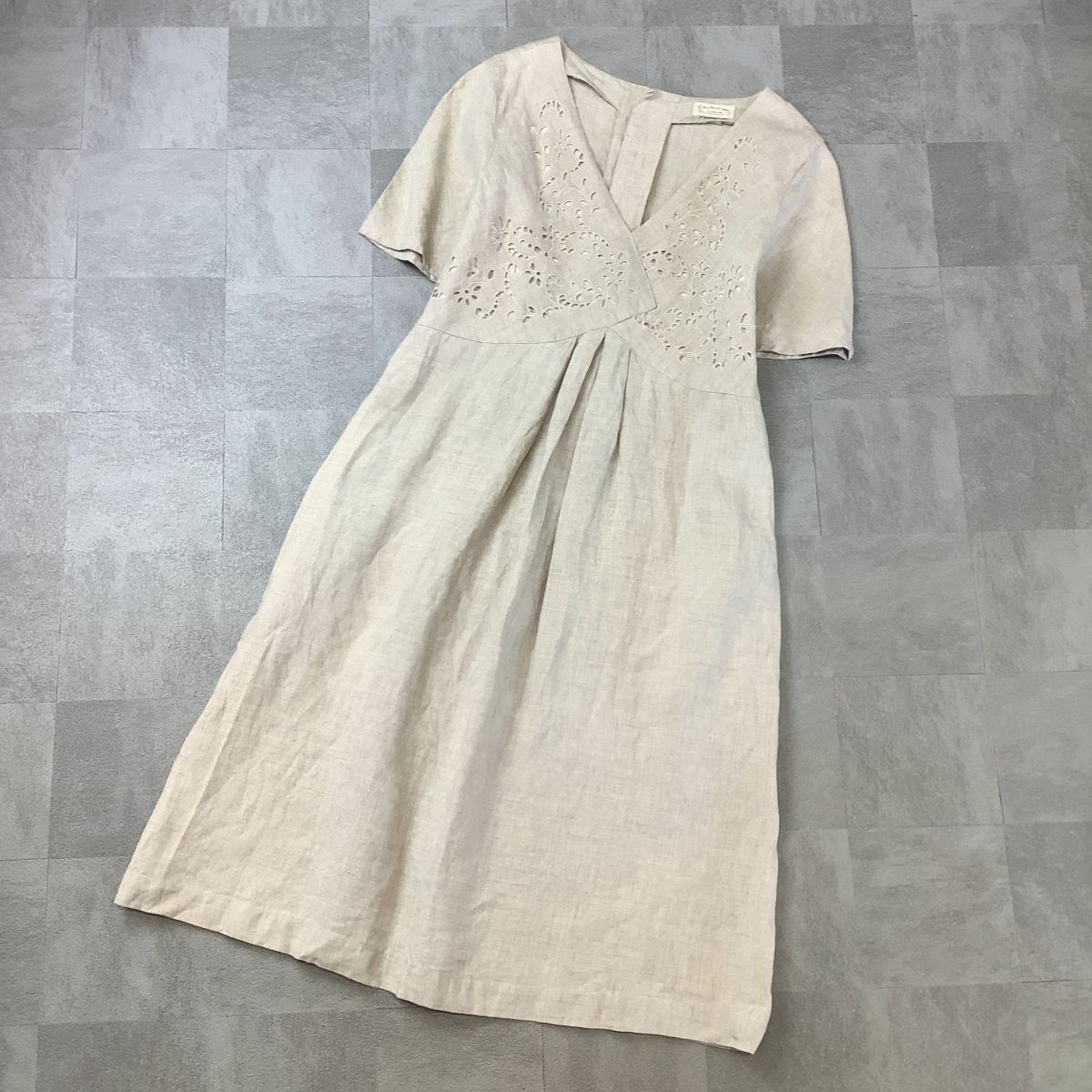 - 【爽やかなリネン100%】美品 chon chon maman 刺繍 リネン ロングワンピース レディース L 生成り