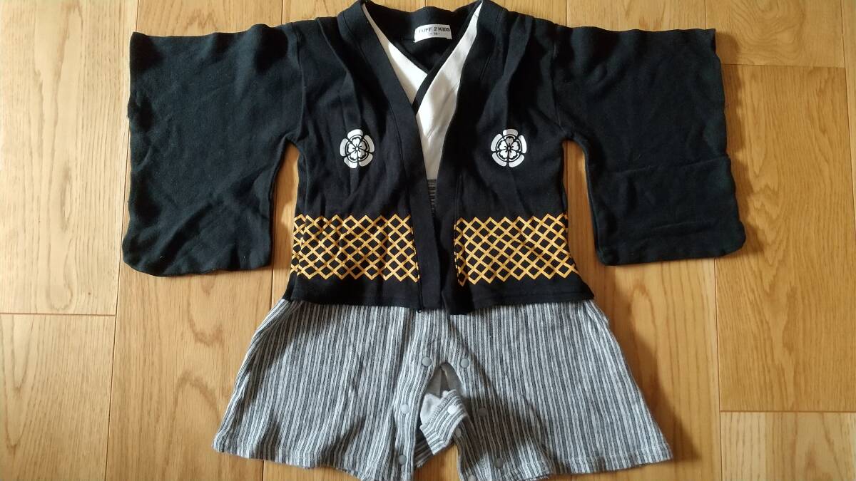 - 【美品】男児 袴風ロンパース はかま ロンパース 男の子 70 ベビー 初節句 ハカマ 袴 ホワイト お食い初め お宮参り