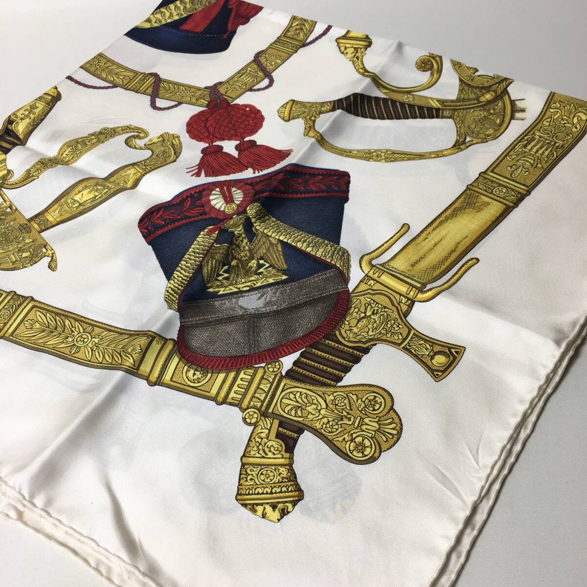 - 76B132|美品|エルメス カレ 90 スカーフ シルク ホワイト
