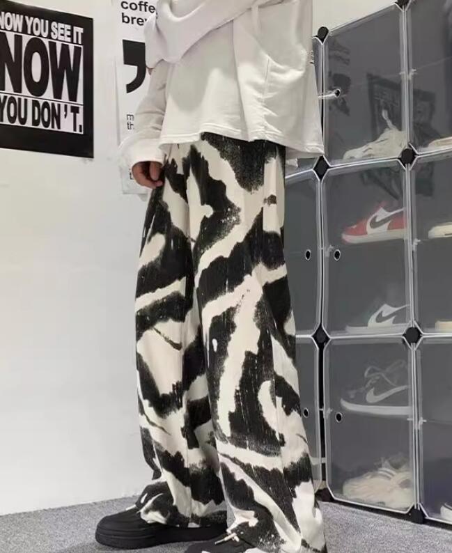 - 新作メンズ ワイドパンツ メンズパンツ 総柄シャツ スポーツ 長ズボン 大きいサイズ ウエストゴム 春 秋 ゆったり カジュアル(2色S-XL)