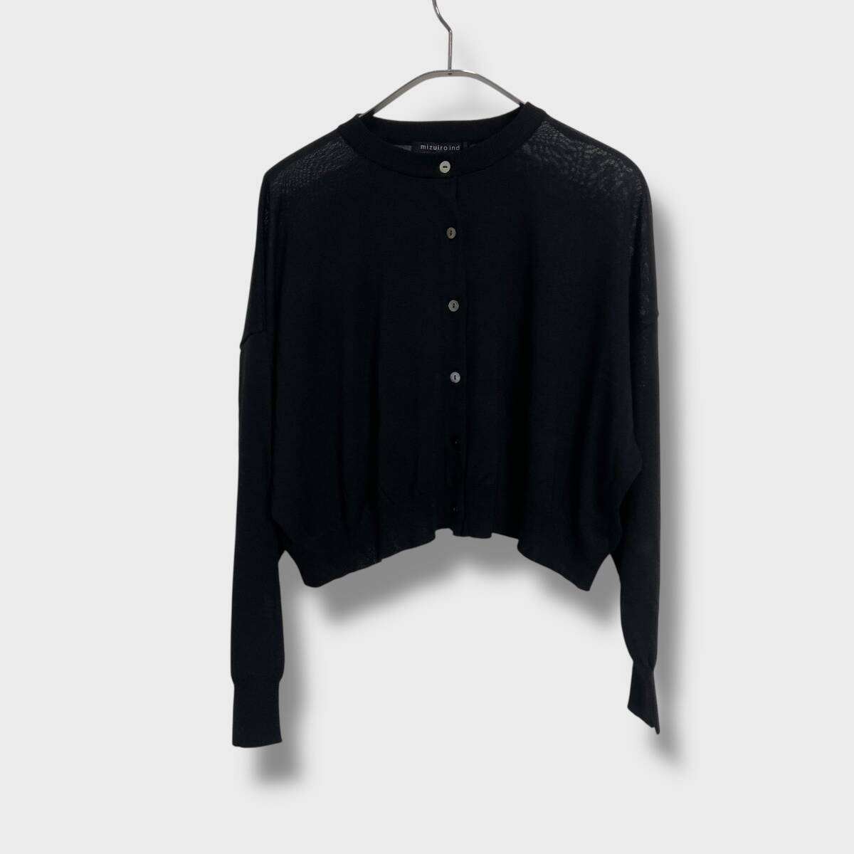 - 送料無料☆タグ付き未使用品☆mizuiroindミズイロインド☆ショート丈カディガン☆レーヨンポリ☆黒☆G25M