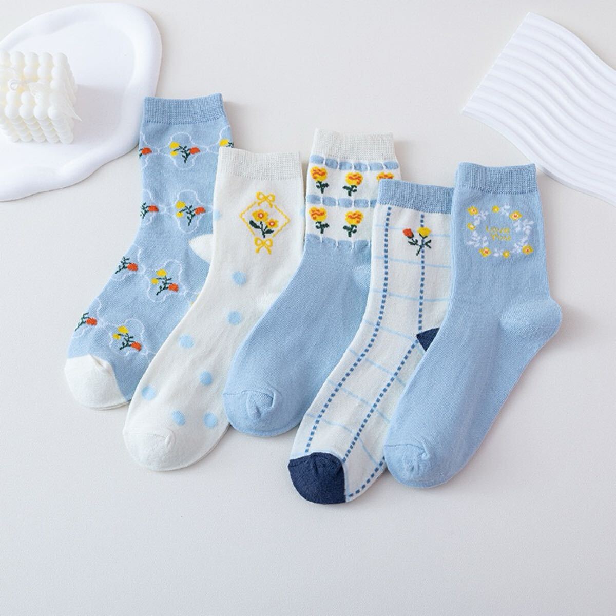 - 新品 まとめ売り レディースソックス 5足セット 北歐 韓国オールシーズンクルー丈 女性靴下