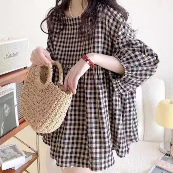 - 新入荷* カジュアル キレイめ Tシャツ レディース チュニック チェック柄 シャツブラウス 通勤 OL 大きいサイズ フレア ブラウス トップス*