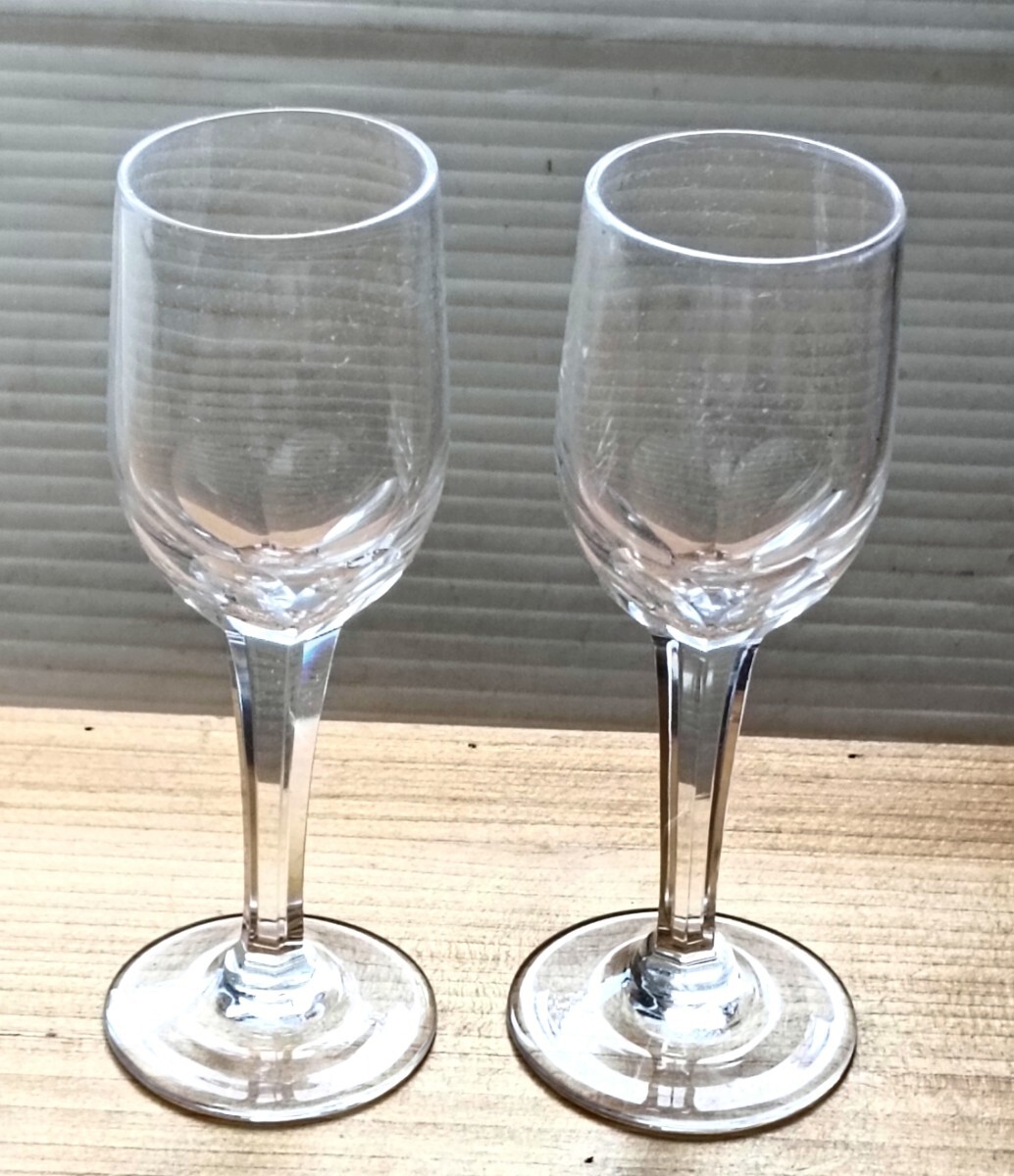 - 昭和レトロ 昭和前期 リキュールグラス ペア 寸法 口径3.5 高さ11.5cm 高足部分が面取りされ持ち易さと装飾を兼ねています。