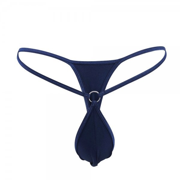 - メンズ ティアドロップ型 メタルリング ひょうたん フルシーム Tバック ビキニ ネイビー 日本Mサイズ
