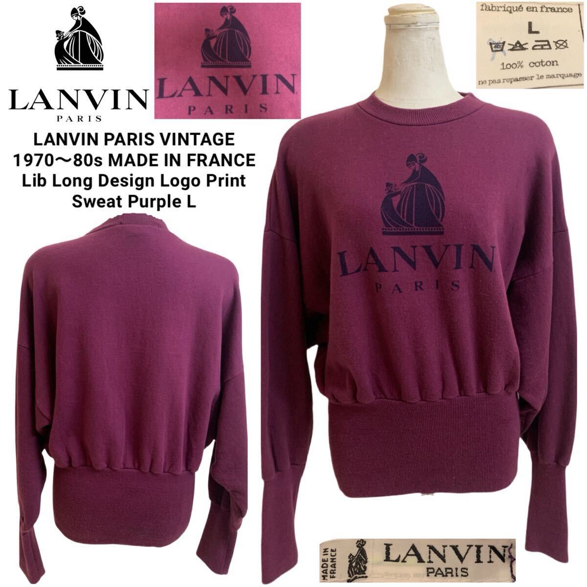 > LANVIN PARIS VINTAGE ランバン パリス ヴィンテージ 70s〜80s MADE IN FRANCE フランス製 リブ長 ロゴスウェット パープル L アーカイブ