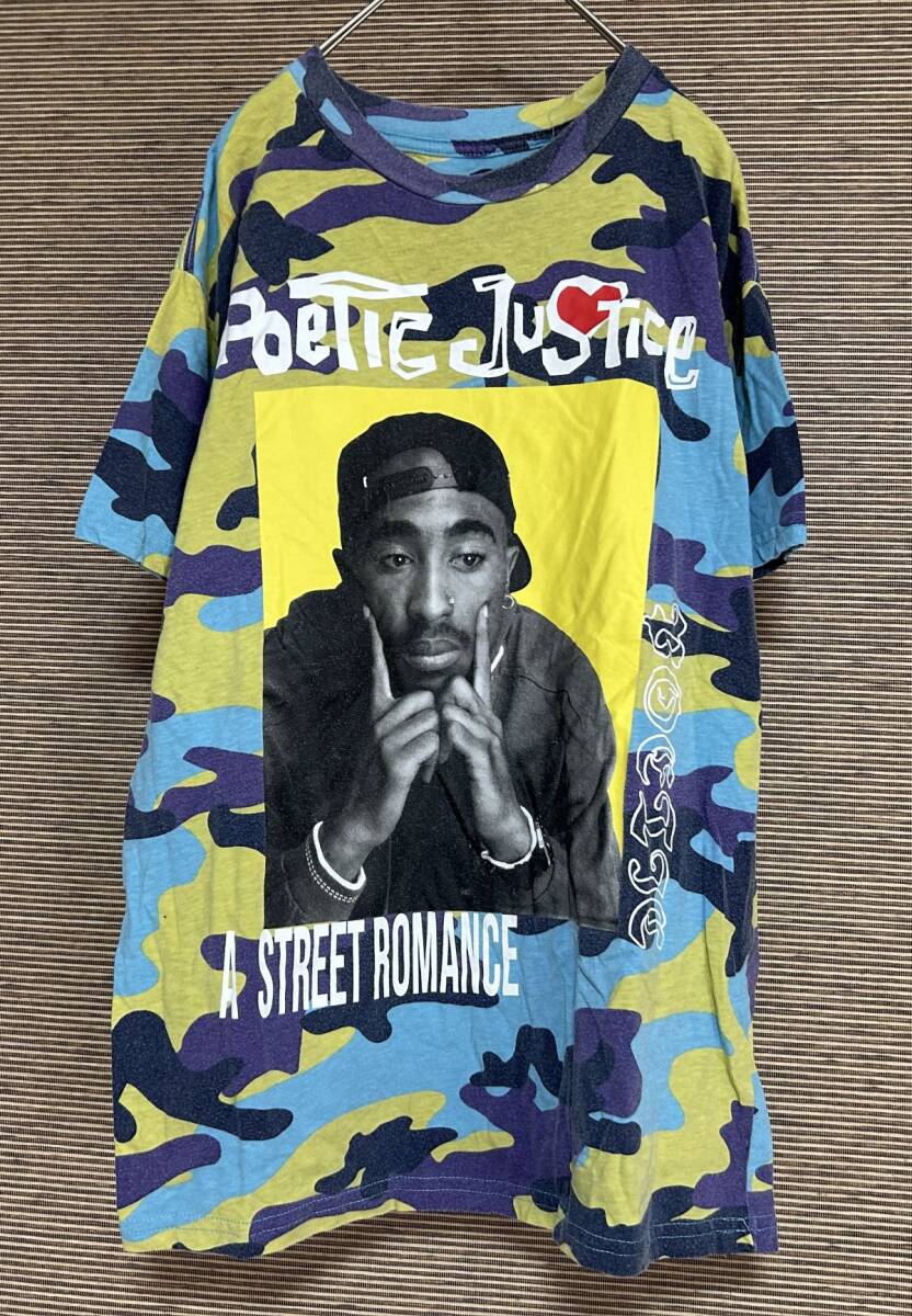 > ポエティックジャスティス 半袖Tシャツ 2PAC 迷彩カモフラ デカロゴ 黄色*3 古着 入手困難 激レア 希少 人気 ミュージシャン