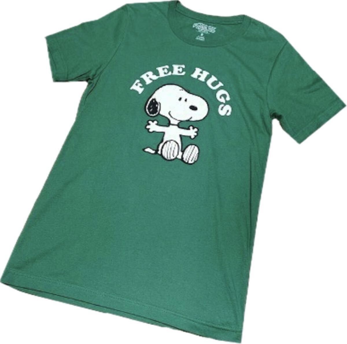 > PEANUTS SNOOPY スヌーピー 半袖 プリント Tシャツ グリーン FREE HUG Tシャツ L ※プリント欠けあり