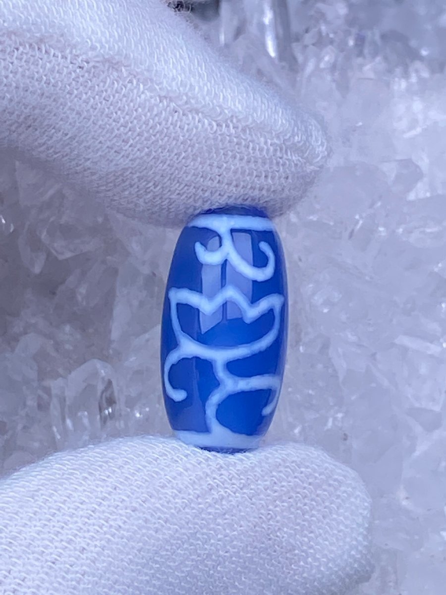 - 即決 0531f941 新入荷★【チベット青玉髄水蓮花天珠】★ 19.7x10mm(新品)