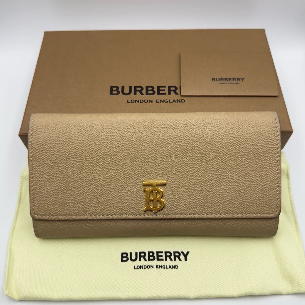 - 美品 バーバリー 長財布 ベージュ ゴールド レザー 小銭入れ付き レディース メンズ TBロゴ 二つ折り財布 カードケース コインケース