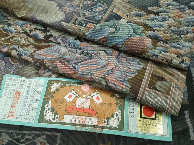 > 平和屋本店■極上 白泥染の第一人者・絣の魔術師 恵積五郎 本場大島紬 恵大島織物 総絣 人物風景文 十二単 証紙付 逸品 未使用 CZAA1803s5