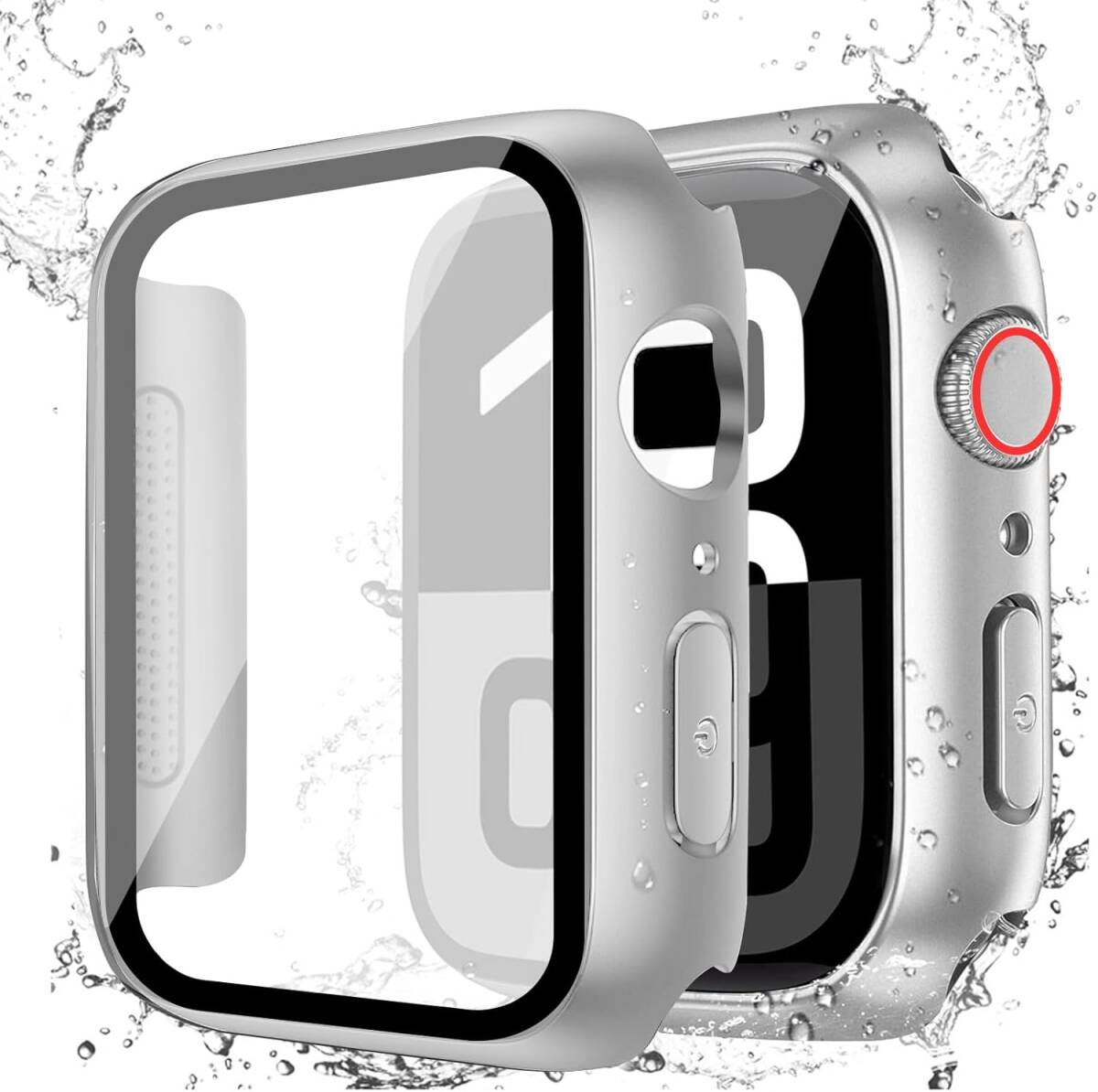 > ATTKAI for アップルウォッチ カバー Series 10/9/8/7/6/5/4/SE2/SE for Apple Watch カバー 防水 一体型 PC素材 (44mm,シルバー)