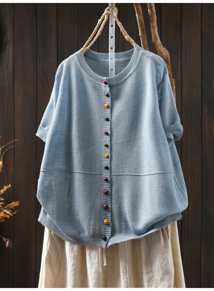 > 25zy サマーニット レディース トップス カラフルボタン ラフ 麻タッチニット チュニック ナチュラル 麻混 サラサラ 涼感 前開け2