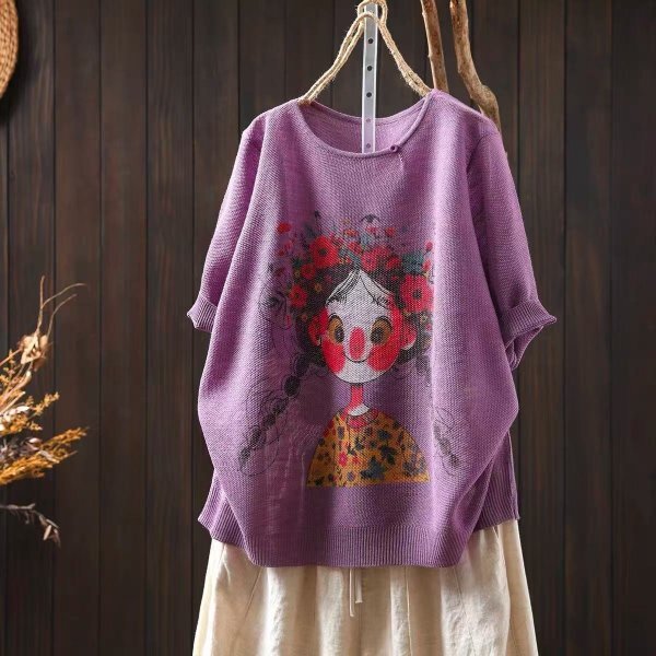 > 25zy サマーニット レディース トップス プリント柄 ラフ 麻タッチニット チュニック ナチュラル 麻混 サラサラ 涼感2