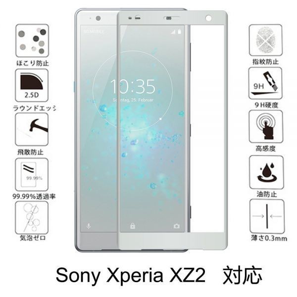 > 3D Sony Xperia XZ2 SOV37 SO-03K 702SO ガラス フィルム 保護 3D加工 曲面 硬度 9H 保護 シール シート カバー 気泡レス シルバー