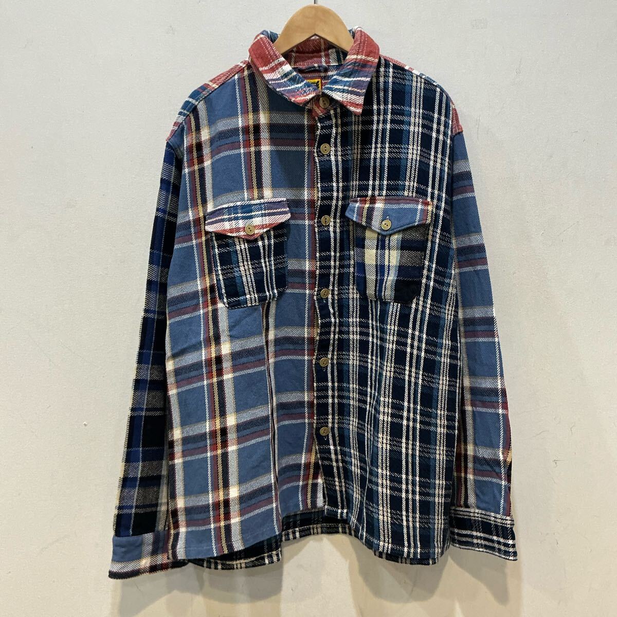 - Human Made ヒューマンメイド HM28SH014Z CRAZY CHECK L/S SHIRT クレイジーチェックシャツ XXLサイズ ネイビー 733940