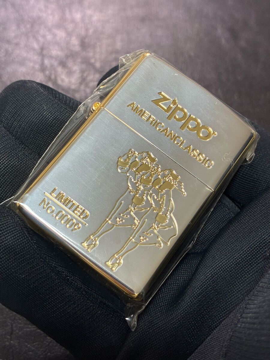 > zippo ウィンディ 4面ゴールド ダブルシルエット 限定品 前面刻印 希少モデル 2024年製 WINDY シリアルナンバー NO.0009