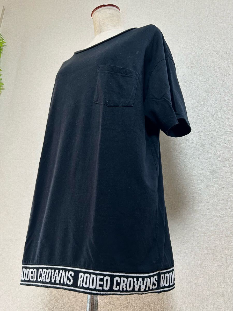 - 【RODEO CROWNS★ロデオクラウンズ】Tシャツ・裾ゴム仕様ロゴ入り・胸ポケット付き・ブラック・Mサイズ