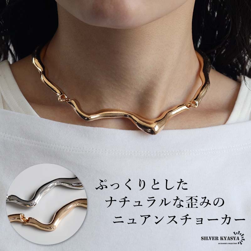 - (シルバー) 不規則 ゆがみチョーカー ぷっくり ゴールド シルバー シンプル ウェーブネックレス レディース 女性
