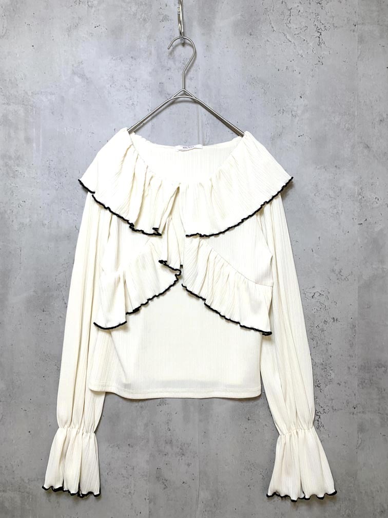 > ゆうパケットOK 新品 mily bilet ミウィビレット フリルクロスメローデザインプルオーバー プルオーバー sizeM/アイボリー ■■