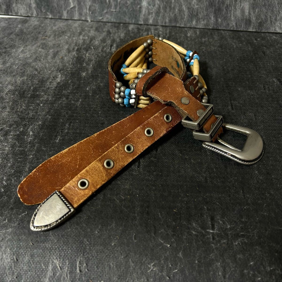 - EL CHARRO ベルト レザー 民族系 ピンバックル ブラウン *U