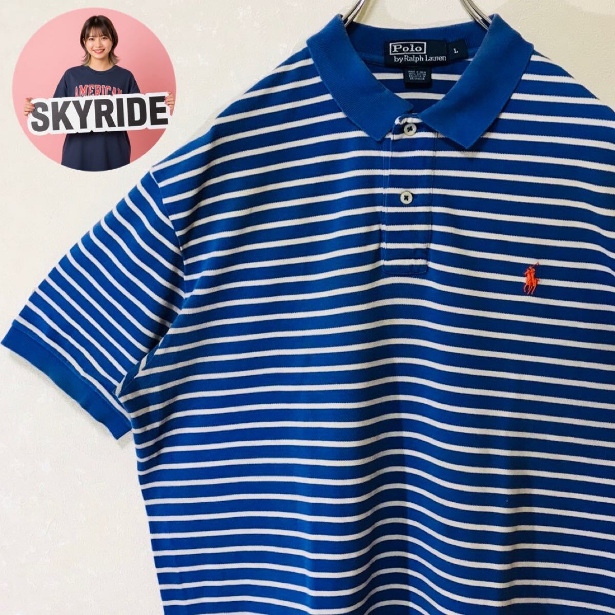 - 【人気】Polo by Ralph Lauren ポニー刺繍 ワンポイントロゴ ボーダー ポロシャツ Lサイズ ブルー メンズ 夏コーデに最適 #TT0243