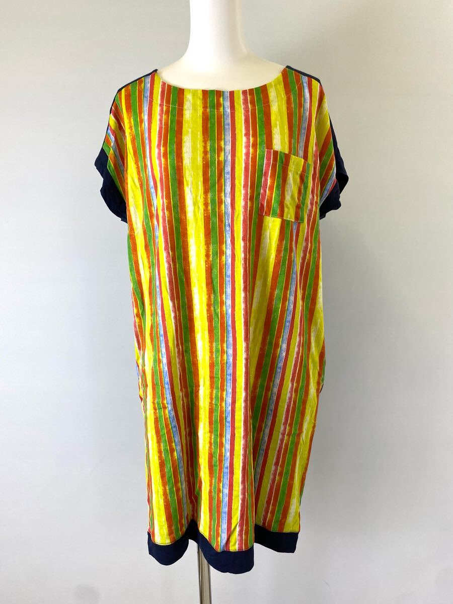 > ● nusy チュニック ワンピース ネイビーマルチ Mサイズ ◆ フレンチスリーブ 半袖 フェリシモ ◆W20 すTLP5-47