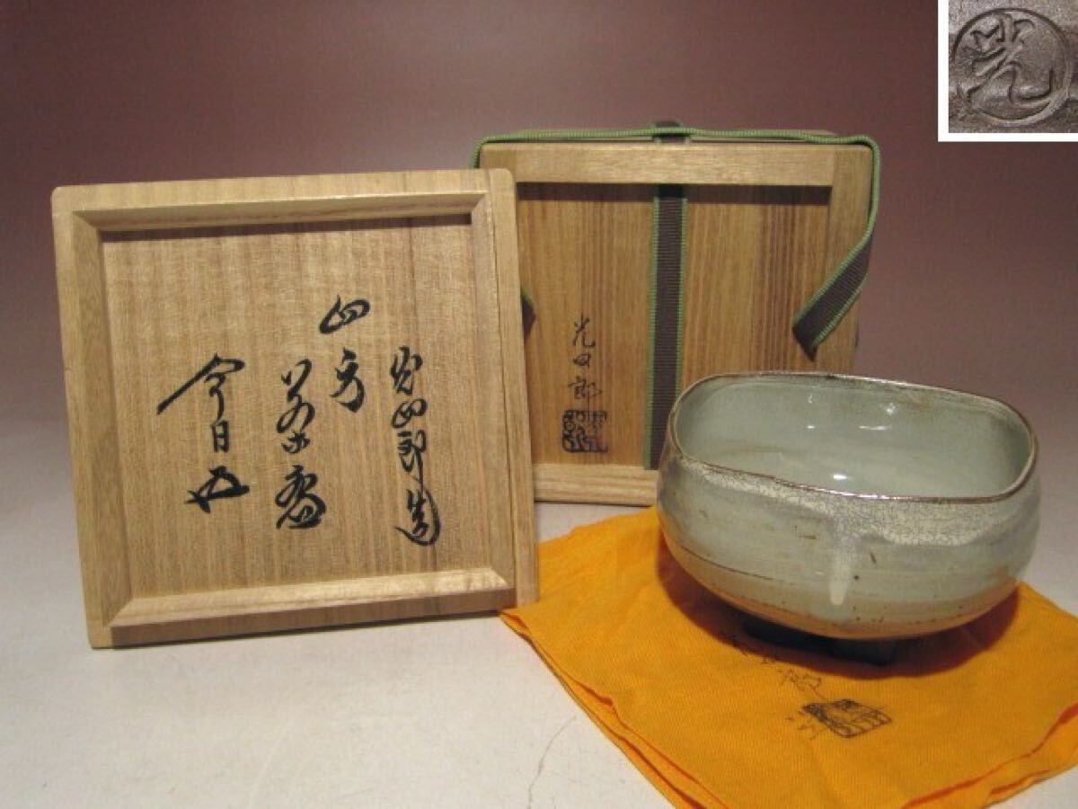 - ※最終値下げ※石崎光四朗 四方茶碗★裏千家鵬雲斎花押★o593