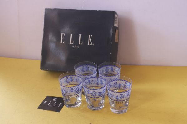 - 未使用品 KAMEI ELLE PARIS(エル パリ)タンブラー5客セット ブルーの花柄 オールドセット /25N3.6-51