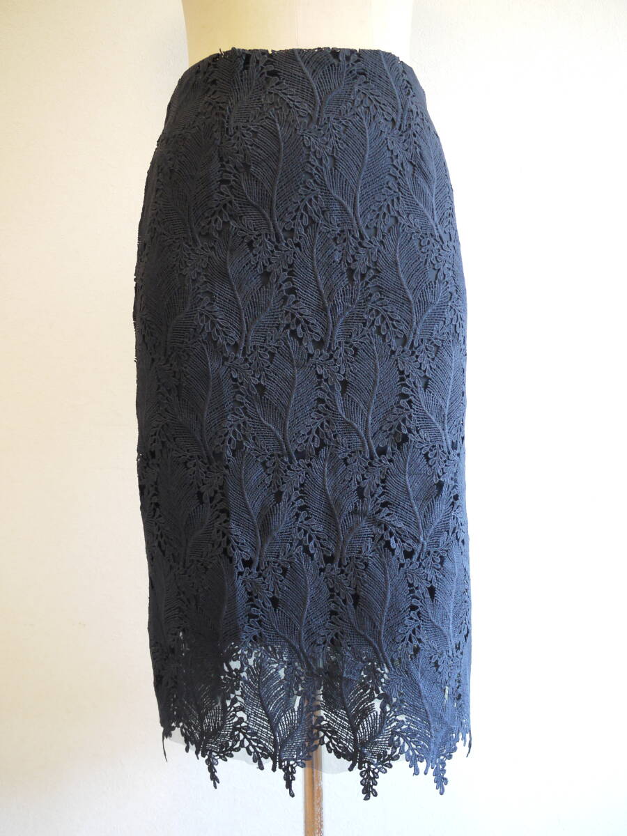 - INED イネド レースタイトスカート ネイビー 9 未使用