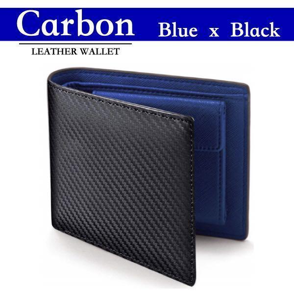 - 財布 二つ折り 2つ折り 小銭入れ カーボンレザー 青 ブルー メンズ レディース 財布 プレゼント ギフト 革 贈り物 おしゃれ cim-009-Blue