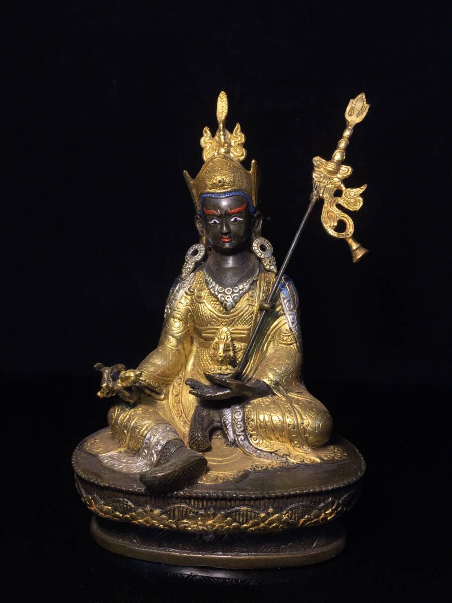 - 【超珍館蔵】銅製 金鍍 彩繪 蓮花生大師像 仏像 宗教 仏教古美術 供養品 古賞物 古董品 古美術品 時代物 旧家蔵出 稀少珍蔵品